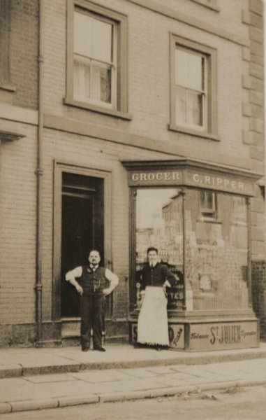 Charles Ripper and his assistant, Harry Baldrick, stand outside his shop in Lower Middle Street, on the south side about halfway between Newton Road and Station Road (see photograph below). The premises is now a tanning salon. This photograph dates to about 1911.