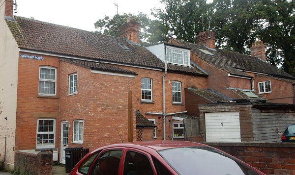 The 'rear' of Somerset Place, seen from the lane alongside the Railway Hotel (which I had my back to taking the photograph). Photographed in 2016.