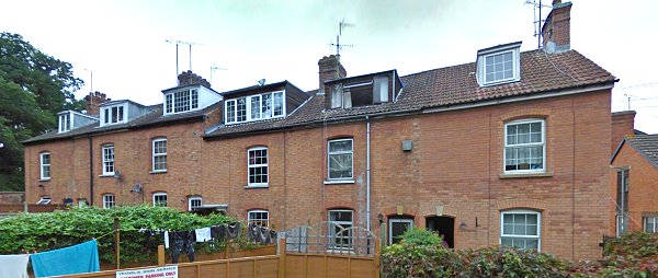 The 'front' of the terrace was built facing the railway line that ran just yards away, alongside the terrace - indeed, the southwestern house of the terrace was almost touching the railway tracks. Today all the houses have later two-storey extensions at the back.
