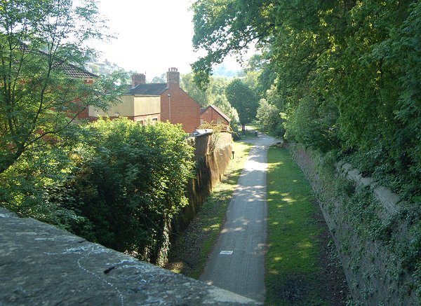 Taken from Hendford Hill bridge over the old railway line, the end wall of Somerset Place is seen just left of centre showing just how close to the railway it was built. Photographed in 2013.