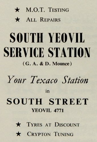 The South Yeovil Service Station was located on the southern side of South Street, almost opposite the Victoria Temperance Hall (today's Day Centre).