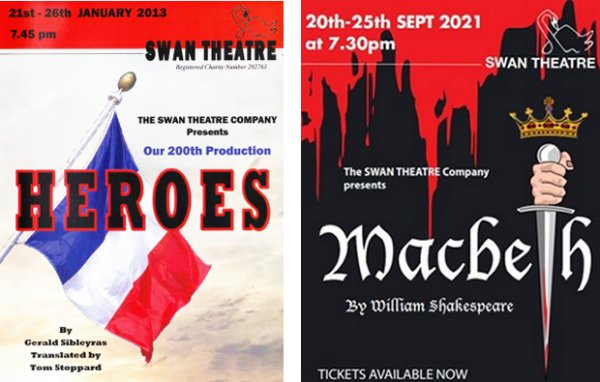 ... and a couple of posters for more recent productions - at left the company's 200th production 'Heroes' of 2013 and at the right the 250th production 'Macbeth' of 2021.