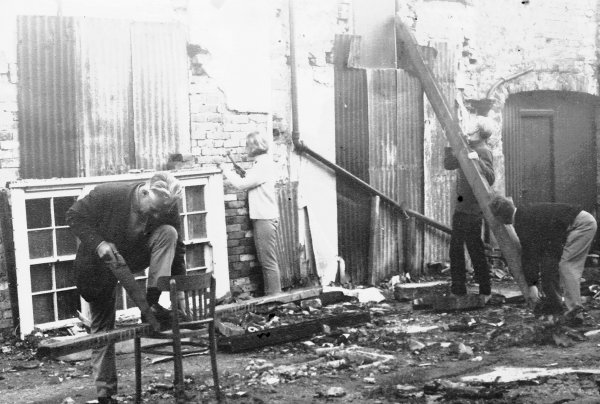 During the summer of 1975 work carried on apace with the construction of the new theatre space behind the original buildings.