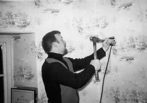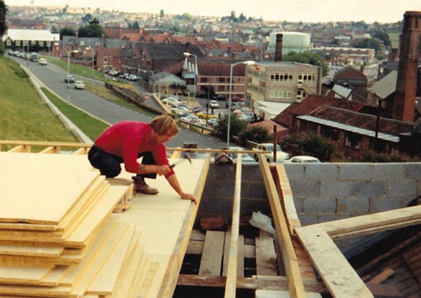 Fixing the roof in the halcyon days of pre-Health & Safety 1975.