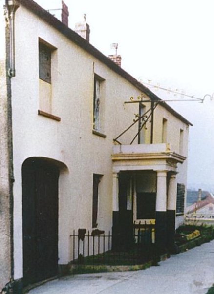 The building, as seen in the photograph below, was a good two storey, double fronted early Victorian building probably built in rendered brick under a slate roof. It had a nice porch, probably in Ham stone (now removed), supported by a pair of Doric columns with an elaborate wrought iron inn sign bracket above. Fenestration was sash windows to both floors and it appears a bay window was alongside the porch. A porte cochere, or arch, now blocked, led through to stabling at the rear of the property.