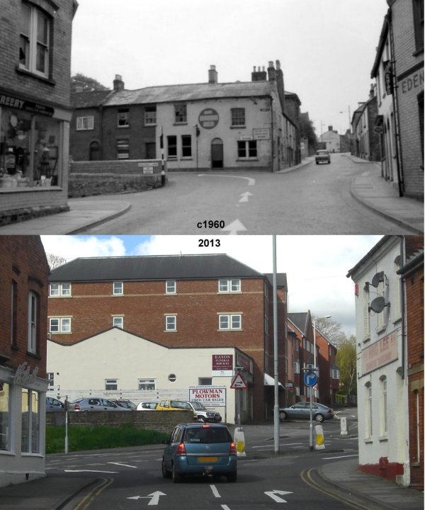 Not difficult to spot the differences between these two scenes; Sam McCreery's junk shop on the left is now a hairdresser and Eden's Fish & Chip shop on the right is now a Chinese takeaway. The Globe Inn was demolished soon after the top photo was taken at a time when this was the main A30 London to Exeter trunk road! Oh yes, there's now a bloody great block of flats dominating the view.