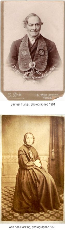 A photograph, probably taken in the 1880s by Samson Dade, outside their Park Street home, of Samuel Tucker, daughter Mary at centre and his wife Ann on the doorstep.