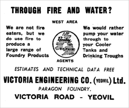 An advertisement in the 20 August 1960 edition of the Taunton Courier, placed by Victoria Engineering Co (Yeovil) Ltd. of the Paragon Foundry.