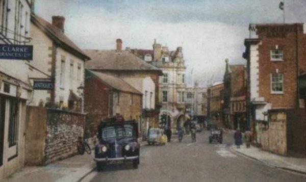 This photograph was taken in the mid-1960's in Westminster Street. The bus is turning the corner into Clarence Street and the two-tone van to its left emerges from the end of Huish. At this time you could drive into Huish from Westminster Street as indicated by the road markings. Douglas Seaton's tower is fondly remembered as a landmark by older Yeovilians and right of centre is the Heart of Oak pub, most recently called the Westminster. Now no longer a pub.