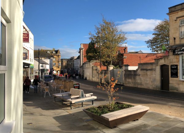 ... and looking east in the wake of the "Yeovil Refresh" scheme from outside the old Westminster. Photographed on 5 November 2023.